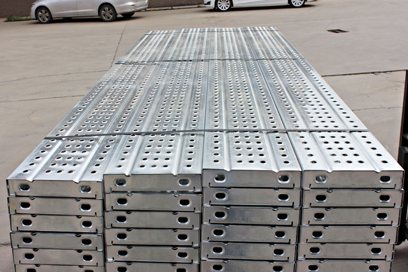 在施工場地,我們經常看到一些金屬跳板,也就是鋼跳板,俗稱腳手架板。 施工人員在上面行走及搬運材料用的輔助器材。這些鋼跳板上有很多孔。 這些孔它的作用是很廣泛的 A. 可以排水,雨天施工不積水?! . 冬天施工防滑,安全得到保障?! . 防結砂,有效防止堆積砂子。鋼跳板在船廠噴砂房很受歡迎?! . 鋼跳板之間的鏈接。鋼筋或鐵絲固定,方便牢固。 在使用鋼跳板施工時,搭建腳手架的鋼管可適當減少